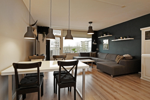 Deze woning is gelegen in een keurig verzorgd en gewild appartementencomplex. Het appartement beschikt over 4 kamers met een zonnig balkon op het westen. Vanaf het balkon heeft u een mooi uitzicht op het nabijgelegen park en over het zwembad welke speciaal voor u als bewoner van het complex toegankelijk is! Op de begane grond is de eigen berging bereikbaar. Het gebouw beschikt over een tweetal liften, trapopgang en videofoon. U woont hier verder op steenworp afstand van het NS-station en het gezellige centrum.